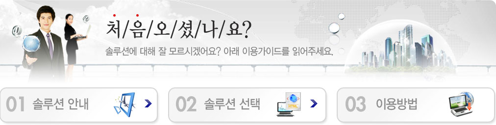 솔루션유형이 정해지셨다면 상단 솔루션 통합검색창을 이용해 원하시는 솔루션을 검색하시거나, 분류에서 찾으시면 됩니다. |